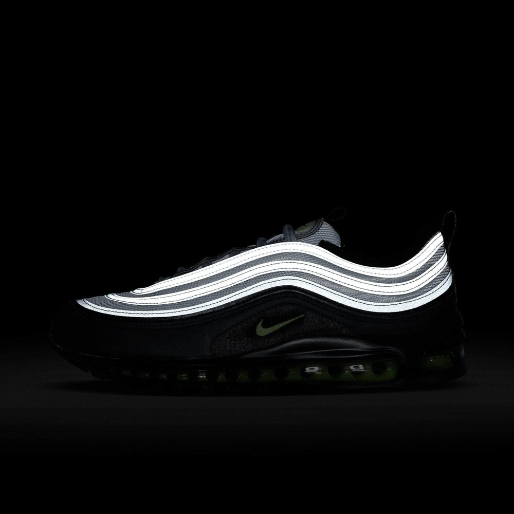Layer on style with the Air Max 97. The original look (inspired by Japanese bullet trains and water droplets) still takes center stage, while a mix of breathable and durable materials let you ride in first-class comfort.