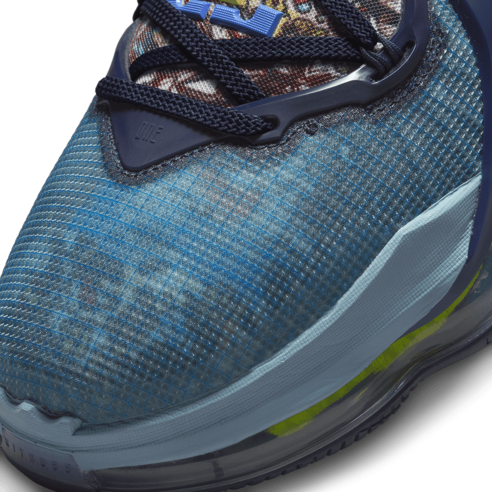 Inspired by LeBron's crown logo, a micro-engineered blade pattern on the rubber outsole adds multidirectional traction.