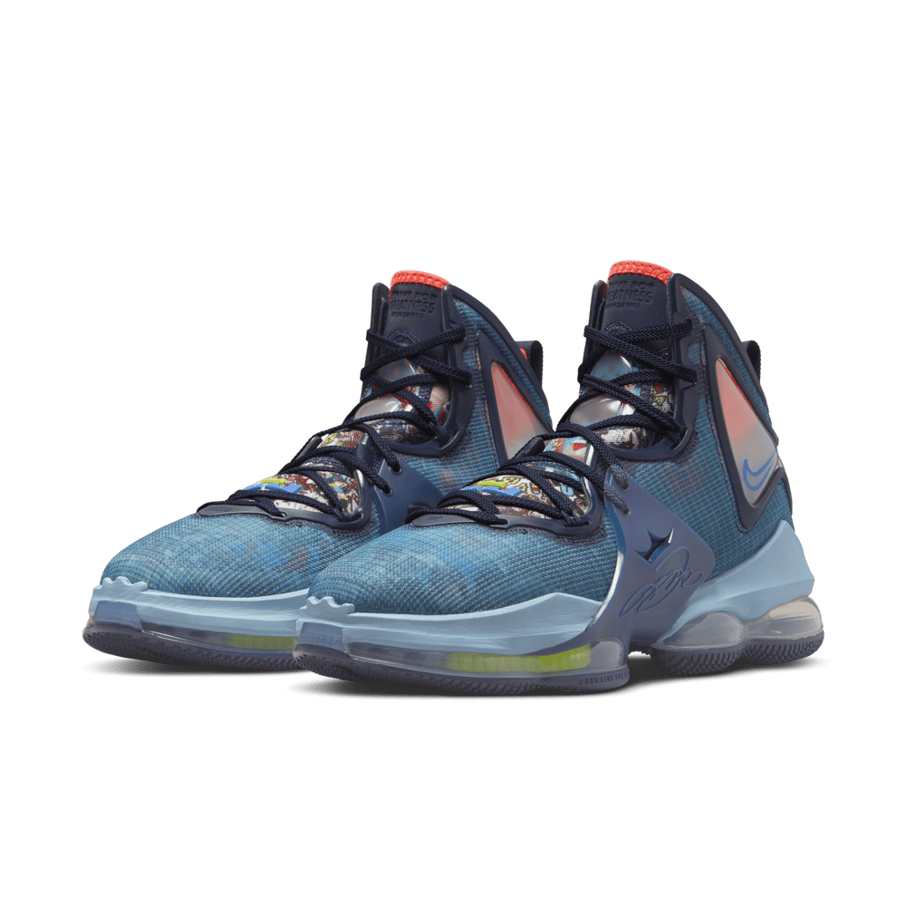 LeBron thrives when stakes are high and the pressure’s on. The LeBron 19 harnesses that energy with a locked-in fit and an updated cushioning system. The snug inner sleeve is pulled together by a sculpted overlay that the laces feed through to help prevent the foot from moving inside the shoe. Cushioned pods around the collar and tongue add comfort while reducing weight, giving players the secure feel and confidence to go all out when the game is on the line.